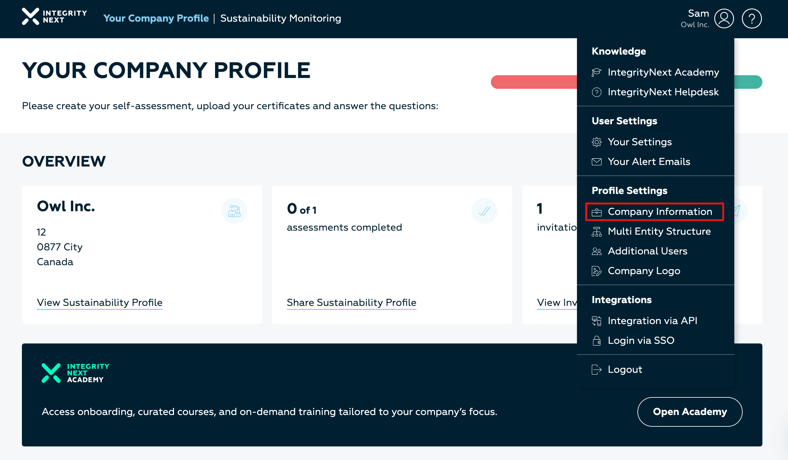 In order to change your Company Name in the sustainability profile, please follow these steps: