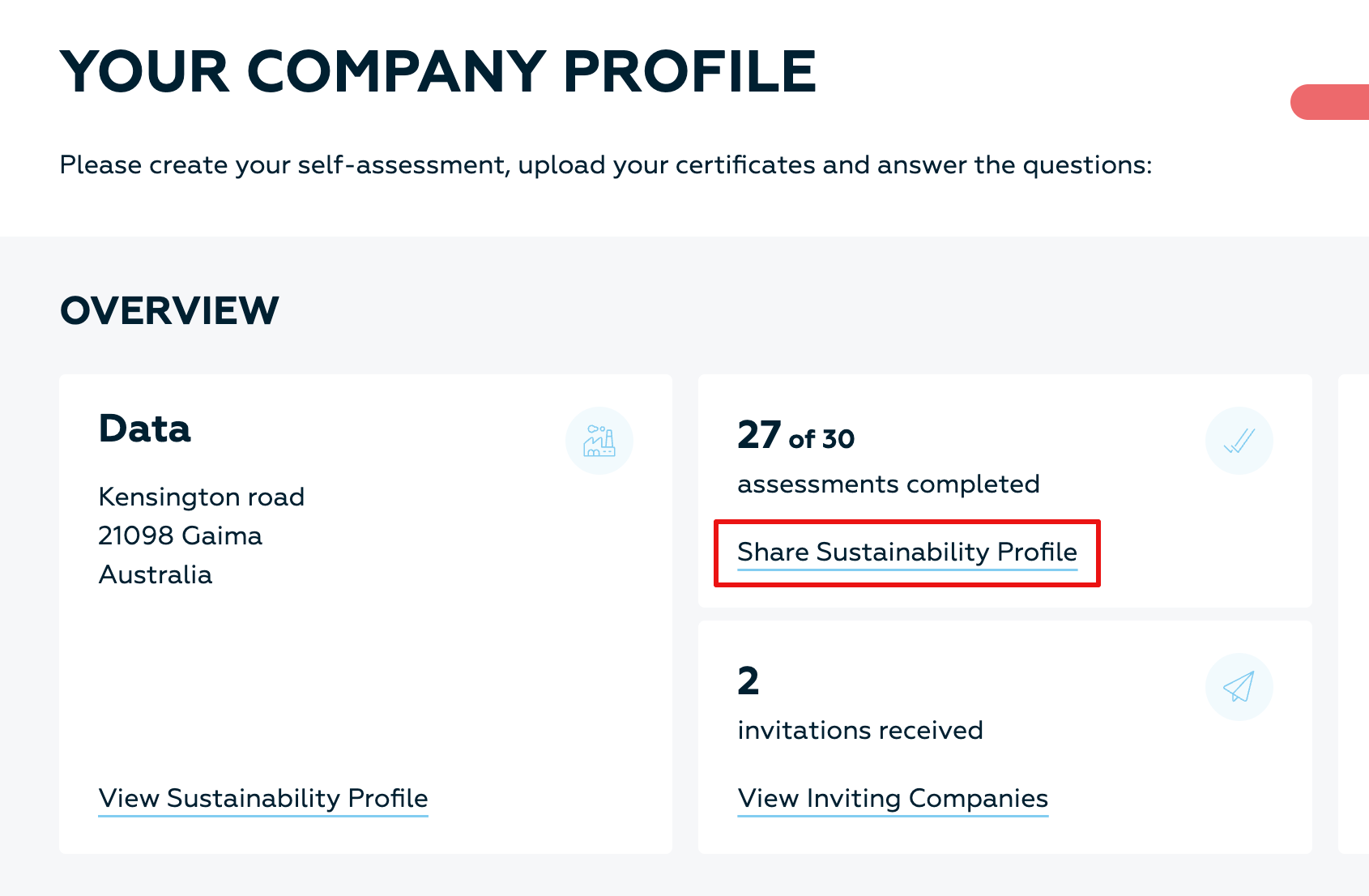 - Click on “Share Sustainability Profile”.