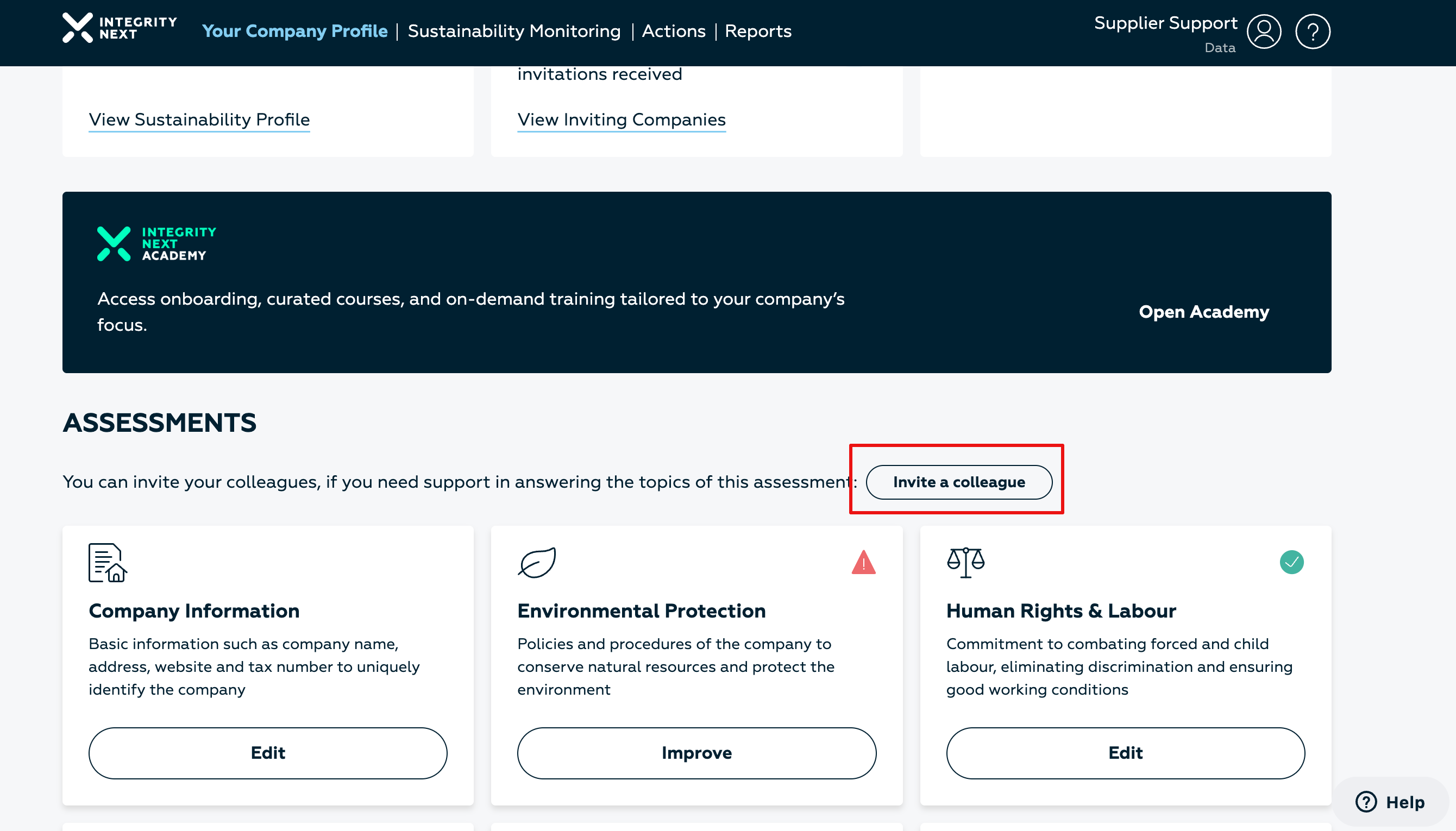2. click on the 'Invite a Colleague' button on the IntegrityNext platform (see the screenshot below),